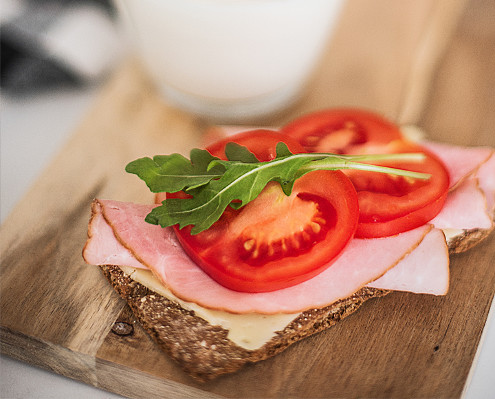 Frukostmackan med Björkrökt skinka, ost och tomat