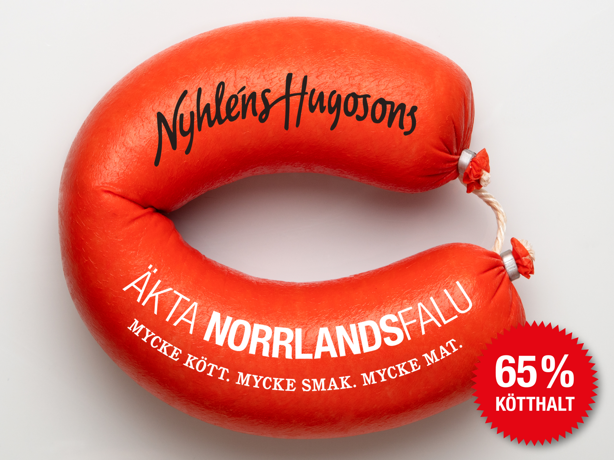Men det finns falukorv och det finns äkta Norrlandsfalu, det är inte samma sak. Hos oss på Nyhléns Hugosons använder vi lokalt kött, röker den med äkta alspån och kryddar med riktigt goda kryddor.