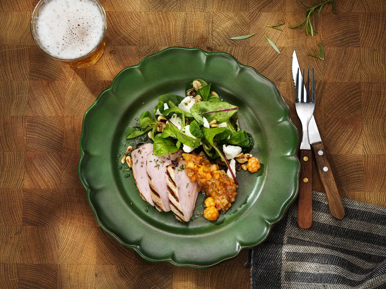 Grillad fläskytterfilé med hjortronchutney och getostsallad