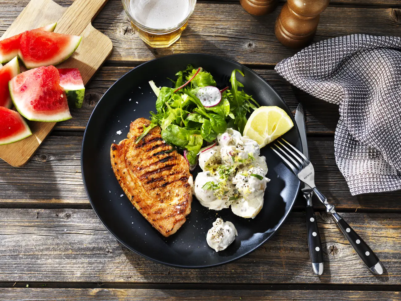 Grillad kryddad kotlett och potatissallad med citron & dragon