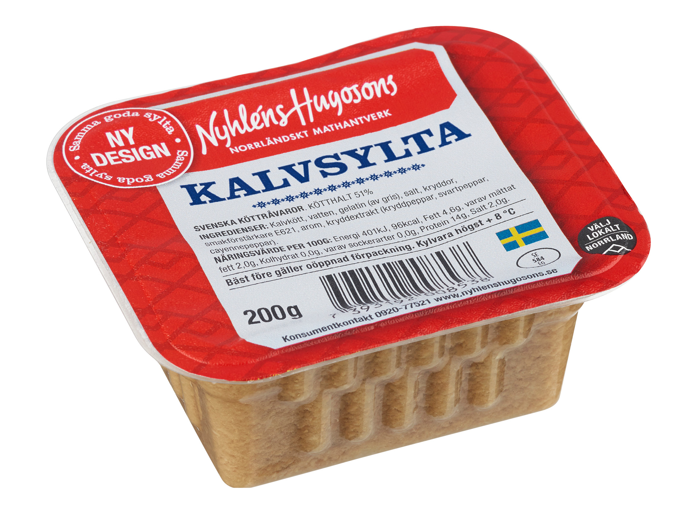 Kalvkött, vatten, gelatin (av gris), salt, smakförstärkare E621, kryddextrakt (kryddpeppar, svartpeppar, cayennepeppar), arom.