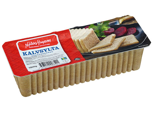 Kalvkött, vatten, gelatin (av gris), salt, smakförstärkare E621, kryddextrakt (kryddpeppar, svartpeppar, cayennepeppar), arom.