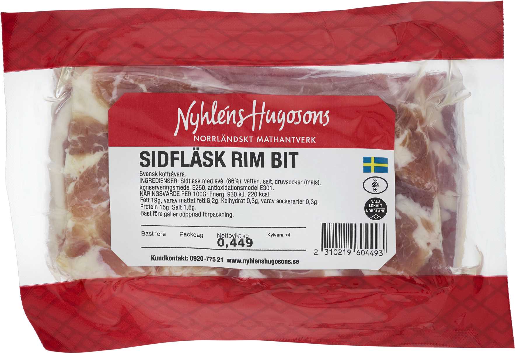 Sidfläsk med svål (86%), vatten, salt, druvsocker,