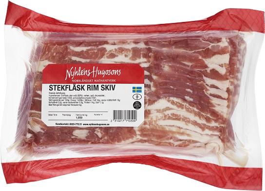 Sidfläsk utan svål (86%), vatten, salt, druvsocker,