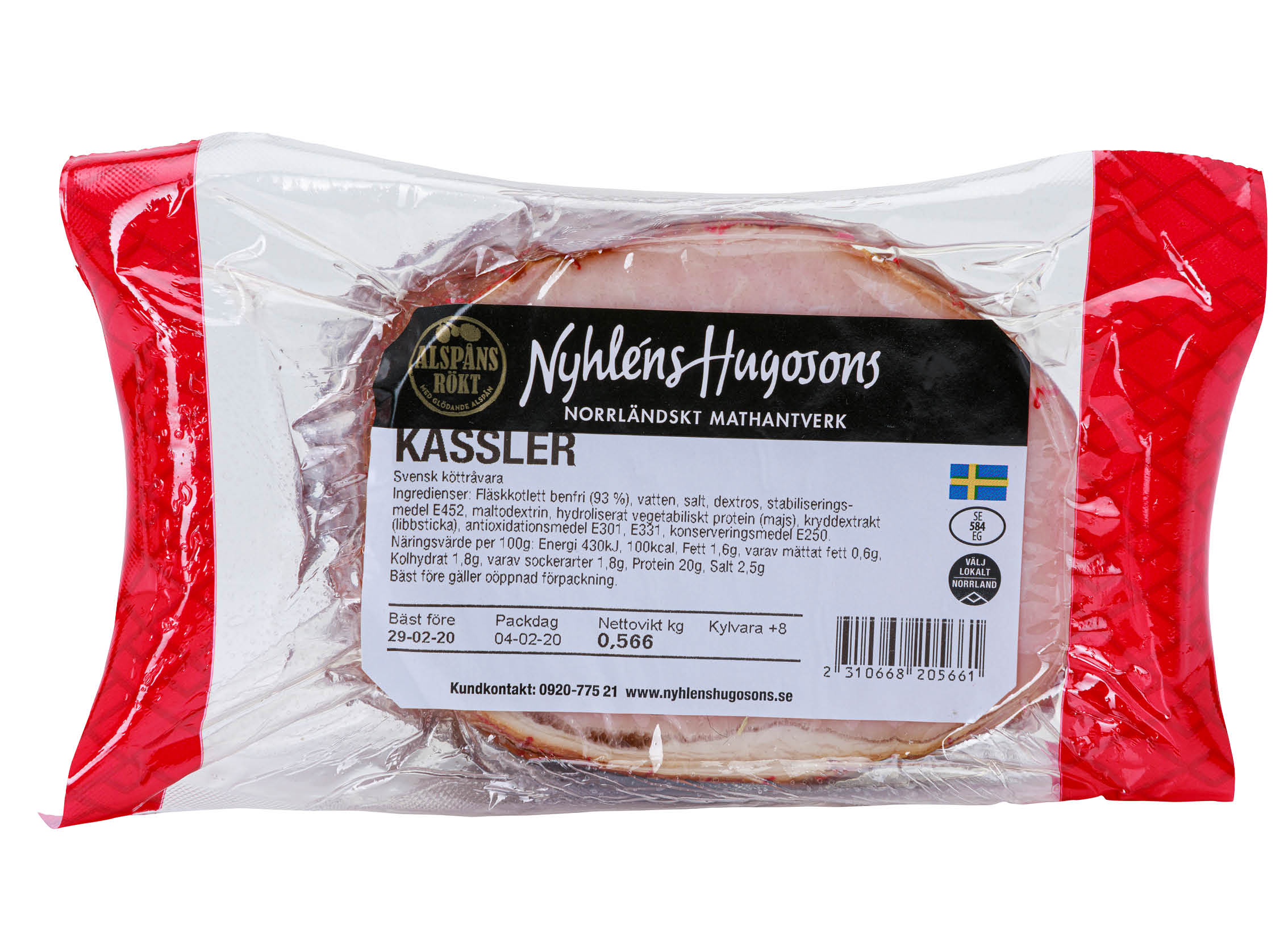 Fläskkotlett benfri (93 %), vatten, salt, dextros, stabiliserings-