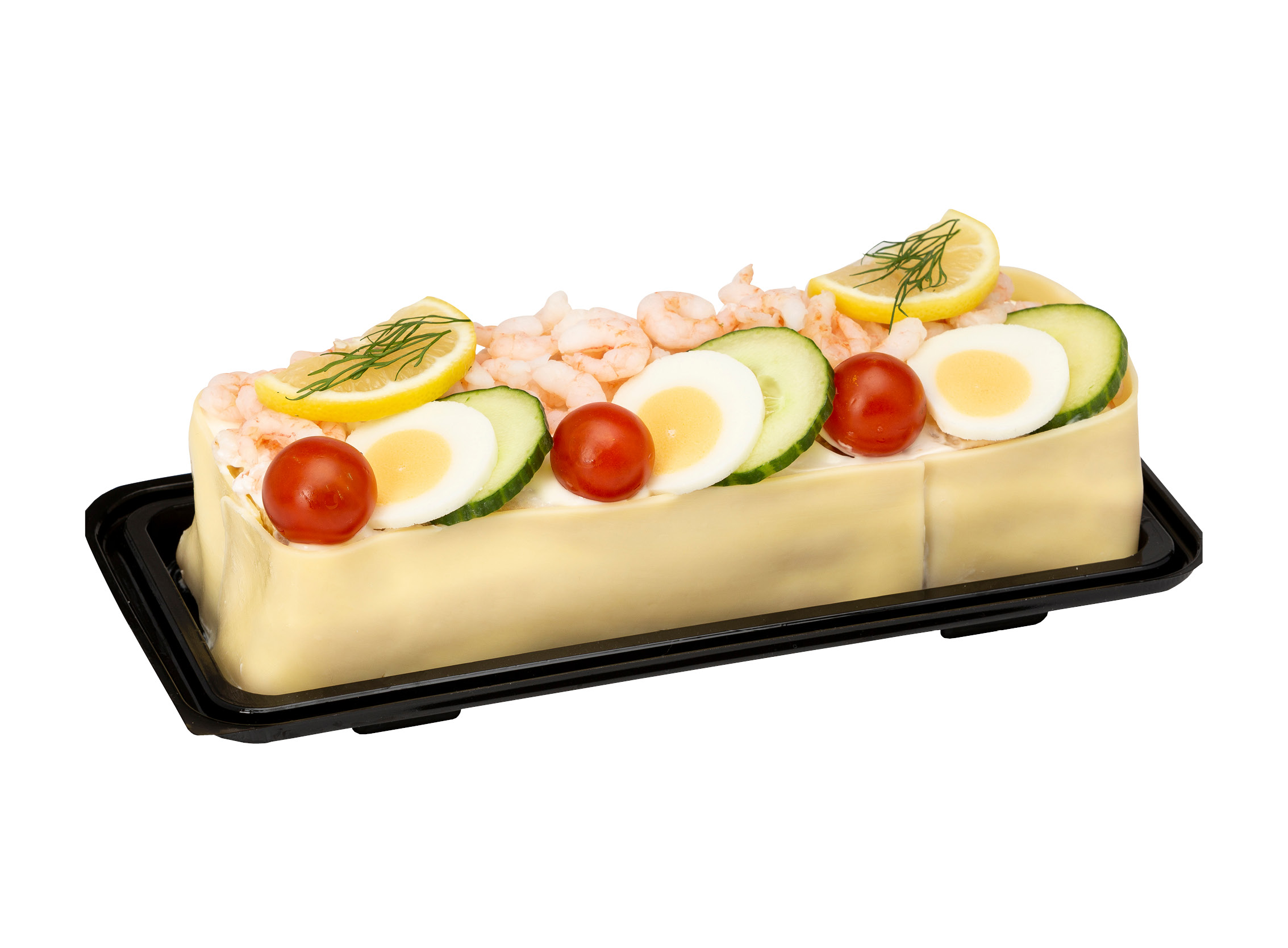 Bröd[VETEMJÖL, vatten, SMÖR, socker, fullkornsmjöl av VETE, sirap, VETEGLUTEN, jäst, salt, dextros, stabiliseringsmedel (E412), emulgeringsmedel (E472 e), surdegspulver av VETE, vegetabilisk olja (raps), MALTMJÖL (VETE), enzym, MALTEXTRAKT (KORN), rapsolja, KORNMALTMJÖL, MALTMJÖL (KORN), Mjölbehandlingsmedel (E300)], Skagenröra(15.1%) [Rapsolja, surimi (24 %)(FISK, vatten, tapiokastärkelse, salt, socker, solrosolja, ÄGGvitepulver, KRABBarom, KRABBextrakt, färgämne (E120, E160c, E170)), RÄKOR (15 %), vatten, socker, tångkaviar (1,6 %) (tångextrakt, vatten, salt, arom, kryddor, konserveringsmedel (E202, E211),antioxidationsmedel (E330), stabiliseringsmedel(E415), färgämne (E160c)), ÄGGULA, salt, dill, SENAPSFRÖ, ättiksprit, vinäger, chili, FISK pulver, tomatpulver, druvsocker, RÄKpulver, vitpeppar, KRABBextrakt, RÄKarom, konserveringsmedel (E202, E211), förtjockningsmedel (E415, E1442), surhetsreglerande medel (E330)], Sommarsallad (15.1%)[Rapsolja, morot, gurka, ananas, vatten, ättiksprit, socker, ananasjuice, lök, rättika, ÄGGULA, gräslök, salt, rödvinsvinäger, SENAPSFRÖ, modifierad stärkelse, citronjuicekoncentrat, chili, arom, konserveringsmedel (E202, E211), förtjockningsmedel (E415), surhetsreglerande medel (E330), sötningsmedel (E954)], Majonäs [Rapsolja, vatten, ÄGGULA, socker, SENAPSFRÖ, ättiksprit, salt, vinäger, chili, konserveringsmedel (E202), förtjockningsmedel (E412, E415, E1442), färgämne (E160a)] Räkor (11.1%) [RÄKOR, vatten, salt, antioxidationsmedel (E330), konserveringsmedel (E211, E202)], Ost [Pastöriserad MJÖLK, salt, ostlöpe, syrningskultur], Körsbärstomat, Gurka, Ägg [ÄGG (98%), modifierad stärkelse, salt, surhetsreglerande medel (E330)], Citron, Dill.