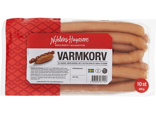 Griskött, vatten, nötkött, fett från gris, potatisstärkelse, nöthjärta, salt, lök, bindväv från gris, kryddor (peppar, paprika, koriander), jästextrakt, kryddextrakt (cayennepeppar,