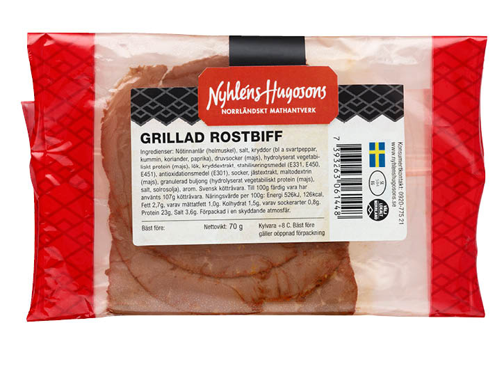 Nötinnanlår (helmuskel), salt, kryddor (bl a svartpeppar, kummin, koriander, paprika), druvsocker, hydroliserat vegetabiliskt protein (majs), lök, kryddextrakt, stabiliseringsmedel (E331, E450, E451), antioxidationsmedel (E301), socker, jästextrakt, maltodextrin, granulerad buljong (hydroliserat vegetabiliskt protein (majs), salt, solrosolja), arom.