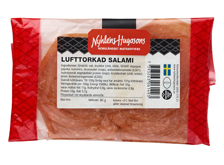 Griskött, salt, maltodextrin, kryddor (vitlök, SENAPSMJÖL,