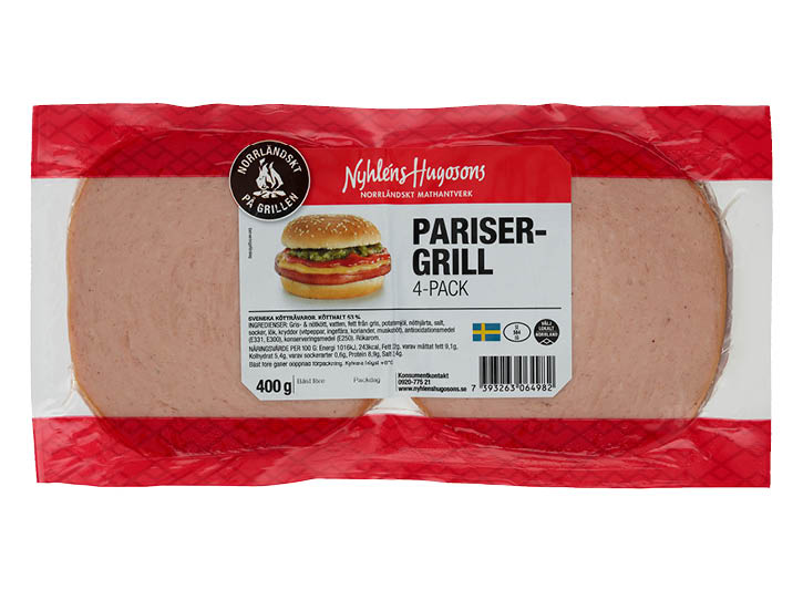Griskött, vatten, nötkött, fett från gris, potatisstärkelse, nöthjärta, salt, socker, lök, kryddor (peppar, ingefära, koriander, muskotnöt), antioxidationsmedel E331, E300, konserveringsmedel E250.