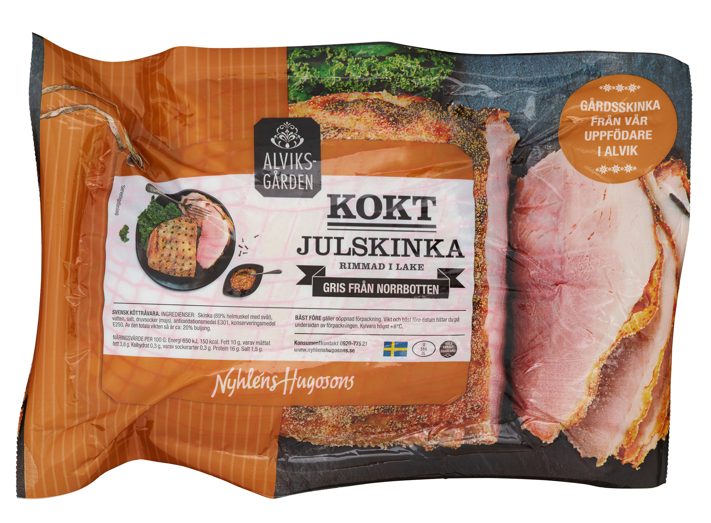 Skinka (89% helmuskel med svål), vatten, salt, druvsocker