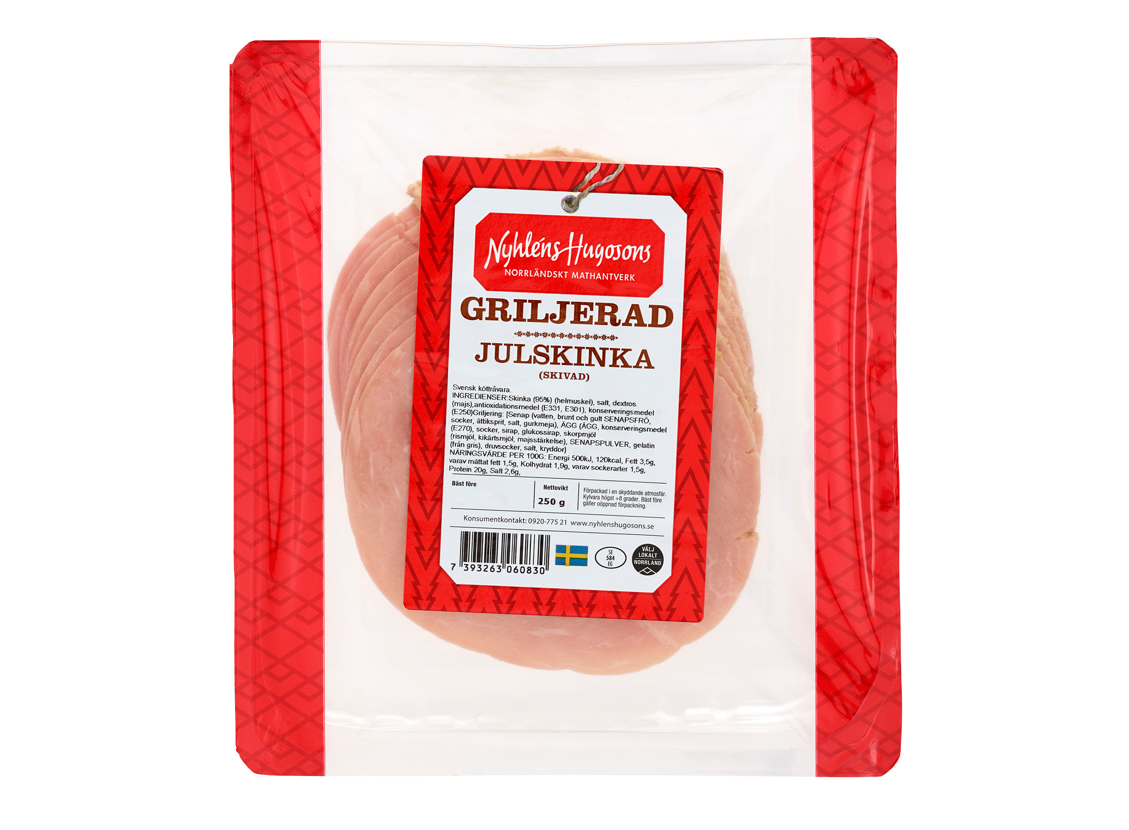 Skinka (95%) helmuskel, salt, druvsocker (majs), antioxidationsmedel (E331, E301), konserveringsmedel (E250), SENAPSgriljering [Skorpmjöl (rismjöl, kikärtsmjöl, majsstärkelse, salt, druvsocker), vatten, druvsocker, SENAPsfrö, socker, gelatin (från gris), SENAPspulver, salt, krydda, arom].
